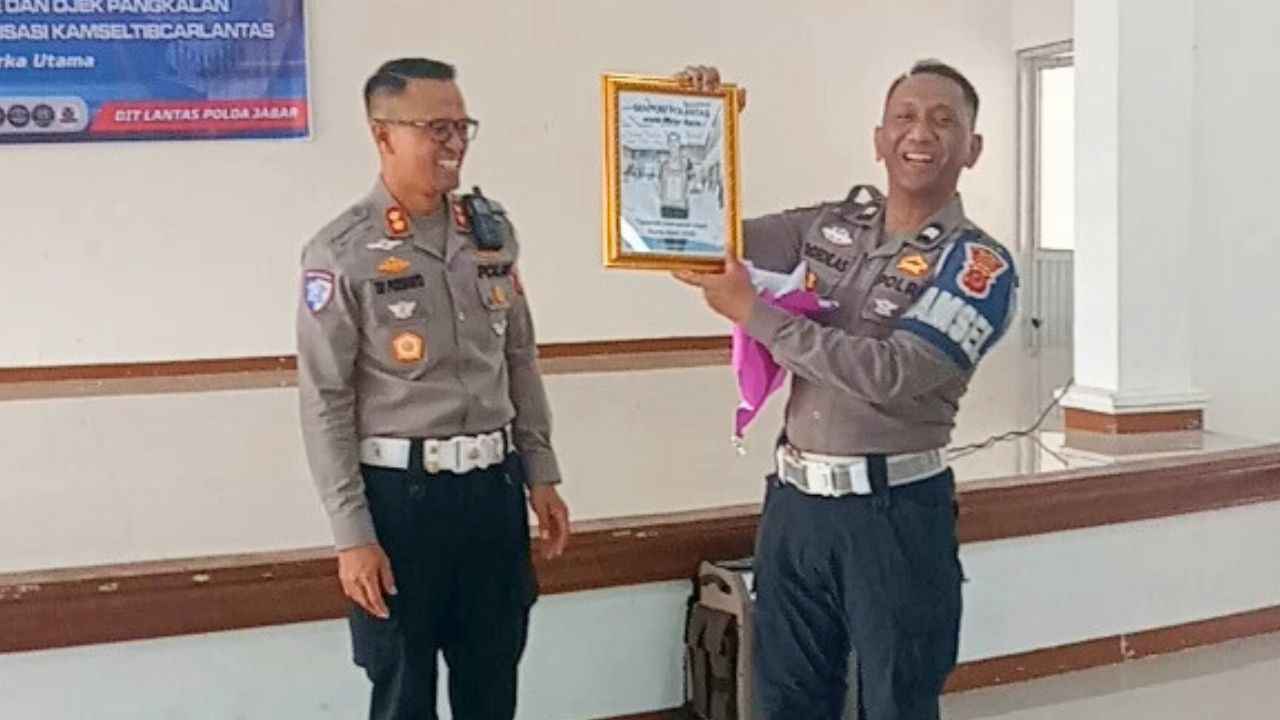 Dpnews Indonesia || Cianjur – Aiptu Dede AS, seorang anggota Kepolisian yang bertugas di Polres Cianjur, mendapatkan apresiasi dari jajaran Ditlantas Polda Jabar menjelang purnabakti. Ia dianggap berhasil merangkul dan mendamaikan pengemudi ojek online dan pangkalan yang kerap berseteru.