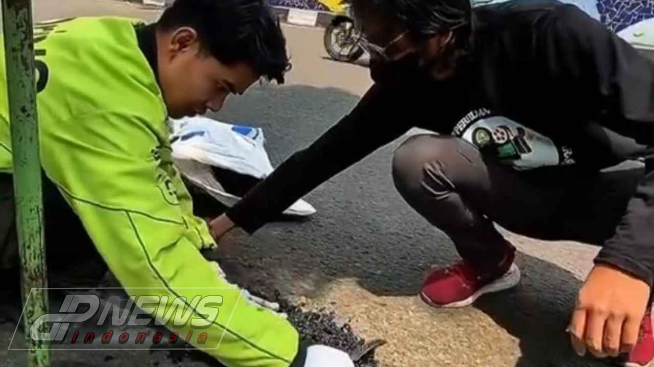Dpnews Indonesia || Bandung – Sosok pemuda berkaos hitam bertuliskan “Forum Kreatif Perfilman Budaya Nusantara” Jawabarat yang terekam menambal jalan rusak di sekitar Flyover Antapani–Kiara Condong, Kota Bandung, belakangan ini mencuri perhatian publik. Banyak warganet bertanya-tanya, siapakah pria tersebut? Apakah seorang artis atau pegiat seni.?