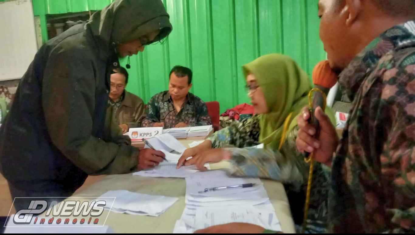Suwarno petugas KPPS TPS 21 desa Tanjungsari Cikarang Utara menghimbau kepada warga untuk tetap datang ke lokasi meskipun cuaca tidak mendukung.