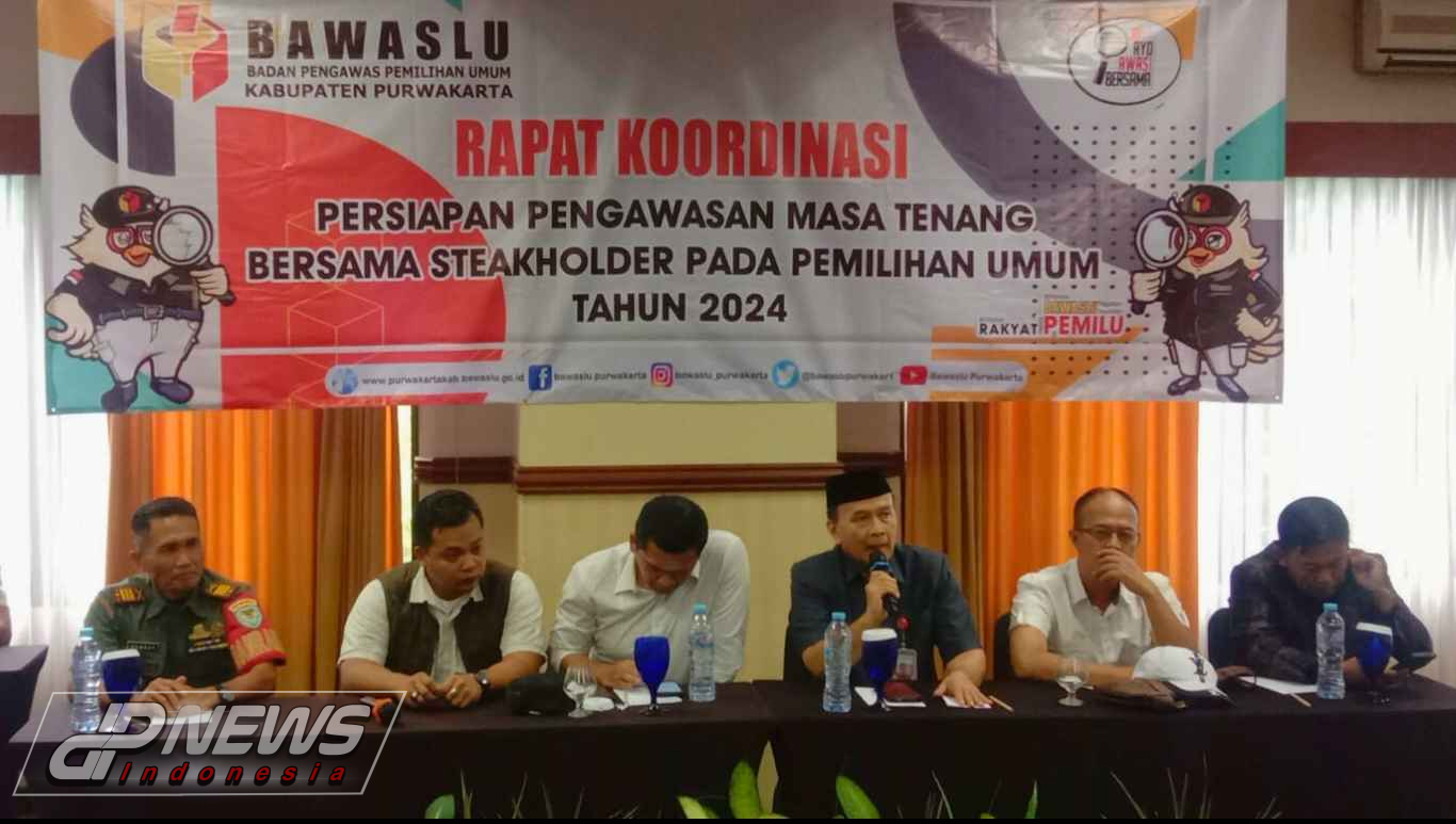Dpnews Indonesia || Purwakarta – Dalam Pelaksanaan kampanye tinggal beberapa hari lagi menuju masa tenang. Bawaslu Di Kabupaten Purwakarta menggelar Rapat Koordinasi Pengawasan Kampanye, dengan Stakeholder dan Peserta Pemilu 2024 di Prime Plaza Hotel, pada Kamis (8/2/2024).