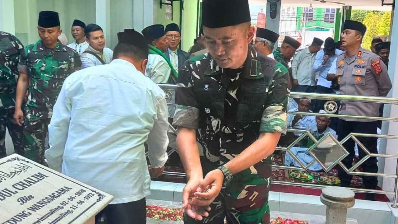 Dpnews Indonesia || Majalengka – Dalam rangka memperingati Hari Ulang Tahun ke-80 Kemerdekaan Republik Indonesia, Dandim 0617/Majalengka Letkol Inf Fahmi Guruh Rahayu bersama rombongan melaksanakan ziarah ke Makam Pahlawan Nasional Pejuang Kemerdekaan sekaligus Pendiri Nahdlatul Ulama (NU), KH Abdul Chalim, di Jalan Raya Selatan No. 09, Desa Leuwimunding, Kabupaten Majalengka, Sabtu (16/8/2025).