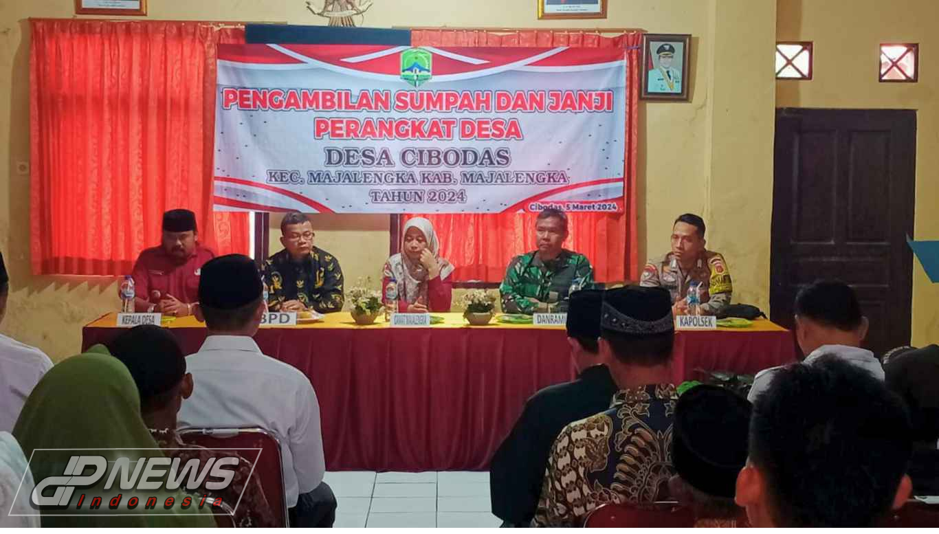 Dpnews Indonesia || Majalengka – Danramil 1701/Majalengka Kodim 0617/Majalengka Kapten Cba Sidik hadir dalam acara pelantikan dan pengambilan sumpah jabatan Perangkat Desa Cibodas, yang bertempat di Balai Desa Cibodas, Kecamatan/Kabupaten Majalengka Selasa (5/3/2024).