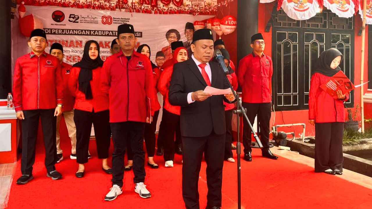 Dpnews Indonesia || Bekasi – Dewan Pimpinan Cabang (DPC) PDI Perjuangan Kabupaten Bekasi menggelar upacara bendera dalam rangka memperingati Hari Ulang Tahun (HUT) ke-80 Kemerdekaan Republik Indonesia, Minggu (17/8/2025).