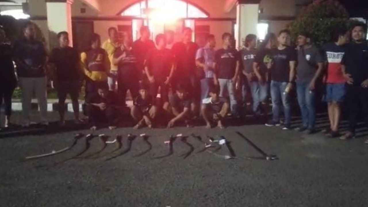 Selain mengamankan para pelaku, polisi juga menyita 12 bilah senjata tajam, termasuk celurit dan senjata jenis “pencabut nyawa”, yang diduga digunakan dalam aksi pengeroyokan tersebut.