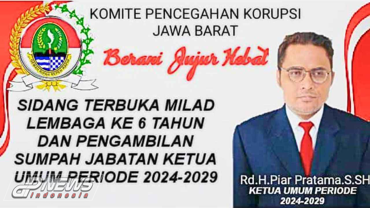Dpnews Indonesia || Cianjur – Komite Pencegahan Korupsi (KPK) Jawa Barat memperingati hari jadinya yang keenam, sekaligus pengambilan sumpah jabatan ketua umum terpilih untuk masa bakti 2024-2029 RH.Piar Pratama, bertempat di Hotel Tiga Intan Jalan Sriwijaya Bandung Jawa Barat.