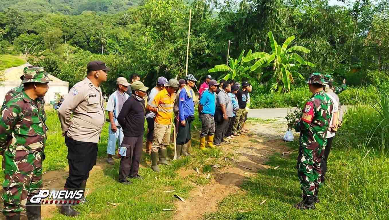 Hadir dalam karya bakti pembersihan saluran air/got, Danramil 1905/Jtl Kapten Arm Deny Kristian, Kades Kertamanah Rahmat Iskandr, Kasi pemerintahan Kecamatan Sukasari Ita,
