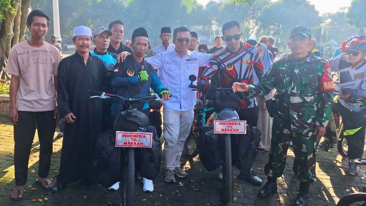 Dpnews Indonesia || Purwakarta – Dua warga kecamatan Plered Mengendarai Sepedah ke Tanah Suci Mekah untuk menunaikan ibadah haji,dua warga tersebut dari dua desa warga Desa Cibogohilir Dedih (53) dan warga Desa Cibogogirang sodara Dadan Suhendar (26) dalam pelepasan dua warga, tersebut di depan kantor kecamatan Plered Purwakarta Jawa Barat. Minggu, (08/06/2025).