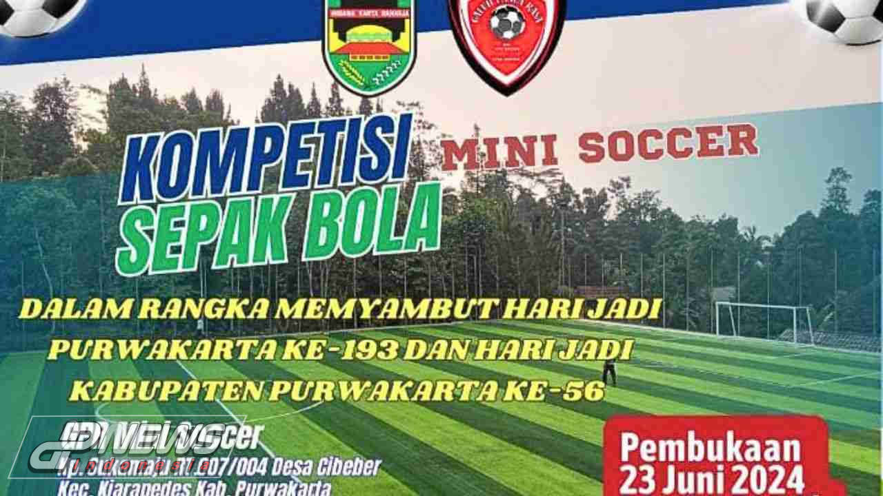 Dpnews Indonesia || Purwakarta – Dalam rangka menyambut hari jadi Purwakarta ke-193 dan hari jadi Kabupaten Purwakarta ke-56, Karang Taruna “Maju Jaya” Desa Cibeber, menyelenggarakan kompetisi sepak bola mini soccer di lapangan GPR (Galuh Panca Rasa) Mini Soccer, Kampung Sukamaju RT.007 RW.004, Desa Cibeber, Kecamatan Kiarapedes, Kabupaten Purwakarta, Jawa Barat, Minggu, 23 Juni 2024.