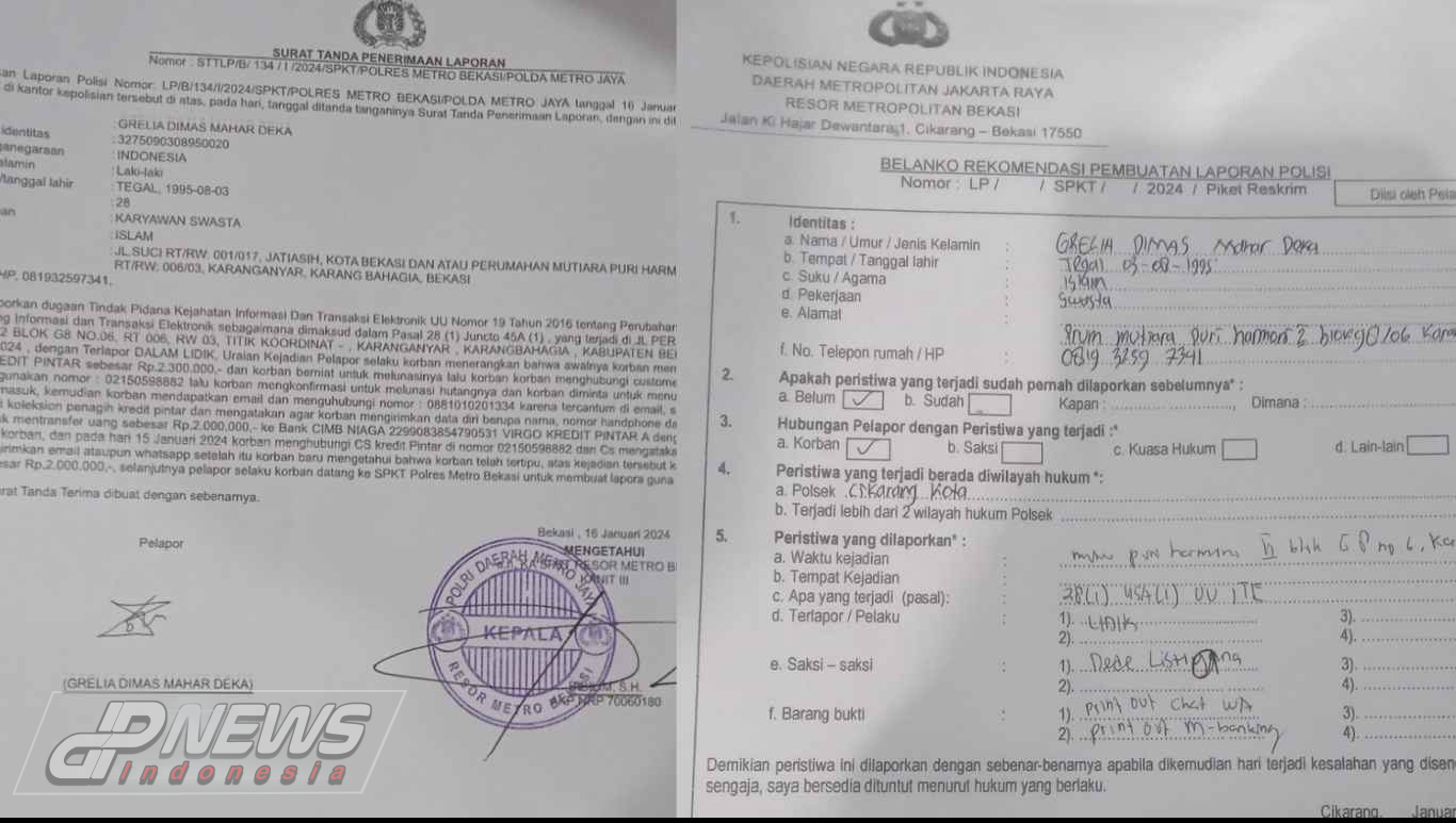 Lebih lanjut customer service (CS) mengatakan bahwa kredit pintar belum mengirimkan email ataupun pesan WhatsApp setelah itu korban Dimas mengetahui bahwa korban telah tertipu, atas kejadian tersebut korban mengalami kerugian materil sebesar 2000.000. selanjutnya pelapor selaku korban datang ke SPKT (Sentra Pelayanan Kepolisan Terpadu) Polres Metro Bekasi, untuk membuat laporan guna penyelidikan lebih lanjut, kasus ini di dampingi dan di kawal oleh Haris Pranatha Para Legal atau Humaniora, Badan Penyuluhan Pembelaan Hukum (BPPH) Bidang Ketenagakerjaan yang juga berprofesi sebagai Kepala Biro Reporter media KompolmasTV, Garda Pelita News, iFakta News Online, suaramassa.co.id Kabupaten Bekasi.