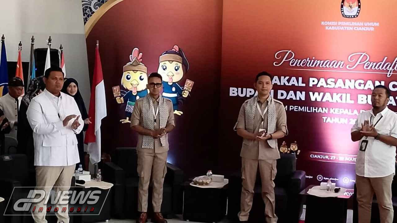 Dpnews Indonesia || Cianjur – Pasangan calon Bupati dan Wakil Bupati Mohammad Wahyu dan Ramzi, telah secara resmi mendaftarkan diri untuk Pilkada Cianjur 2024. Pasangan yang diusung oleh beberapa partai politik besar, Partai Gerindra, Partai Nasdem, PSI, dan Partai Buruh. Mengusung visi untuk membawa Cianjur ke “Era Baru” dengan tujuan memperbaiki dan memajukan daerah Kabupaten Cianjur.