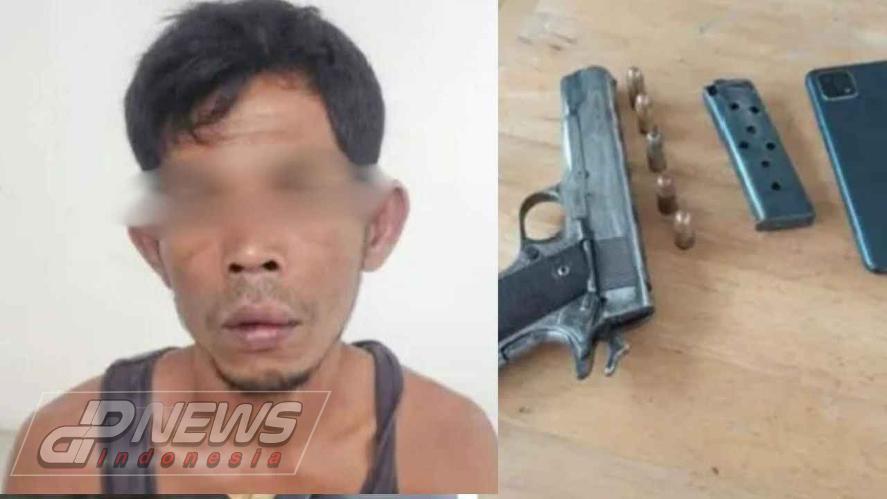 Dalam proses pembubaran tersebut, aparat mengamankan seorang pria yang kedapatan membawa senjata api jenis pistol beserta senjata tajam rencong.