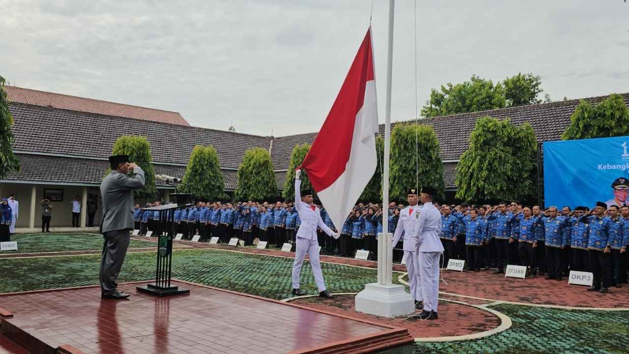 Bupati Majalengka, Eman Suherman menjadi Pembina Upacara yang dihadiri Ketua DPRD Majalengka, Forkopimda, para OPD, Camat dan peserta upacara ASN di Lingkungan Pemkab Majalengka.