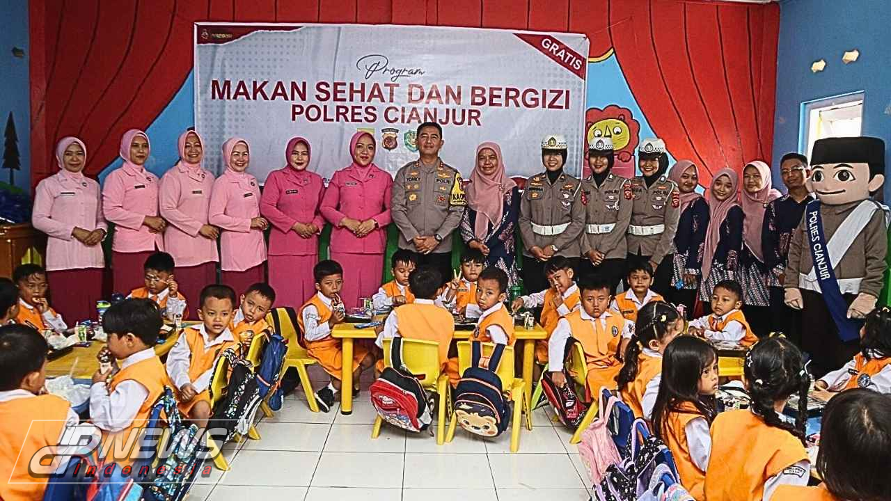 Kapolres Cianjur AKBP Rohman Yonky Dilatha, S.I.K., M.Si., M.H. beserta Pejabat Utama Polres Cianjur dan Pengurus Bhayangkari Cabang Cianjur memberikan makan sehat dan bergizi kepada sekitar 65 siswa dan siswi TK Bhayangkari 7. Selain mempererat hubungan antara polisi dan masyarakat, kegiatan ini bertujuan untuk mendukung tumbuh kembang anak-anak usia dini agar sehat dan cerdas.