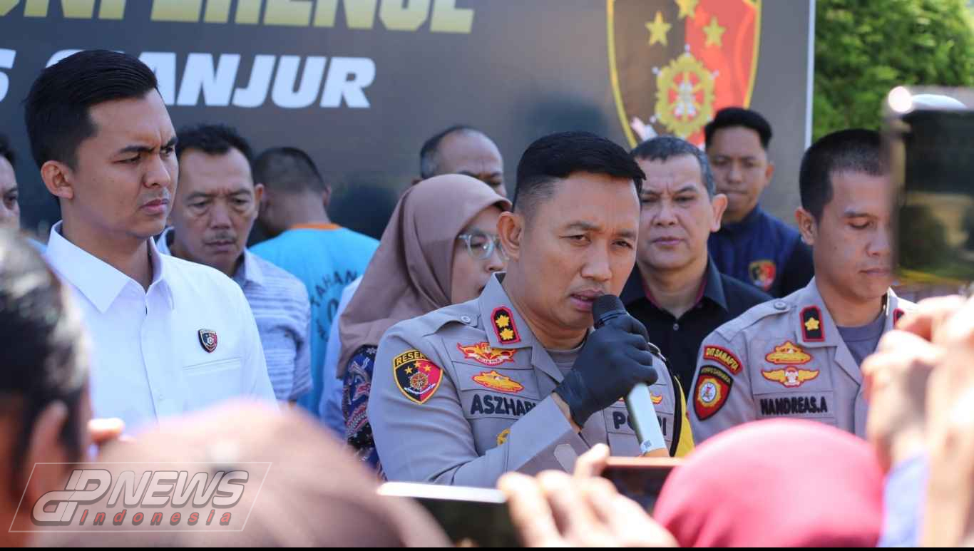 Konferensi pers tersebut digelar di halaman Mapolres Cianjur dan dipimpin oleh Kapolres Cianjur AKBP Aszhari Kurniawan, S.H., S.I.K., M.Si.