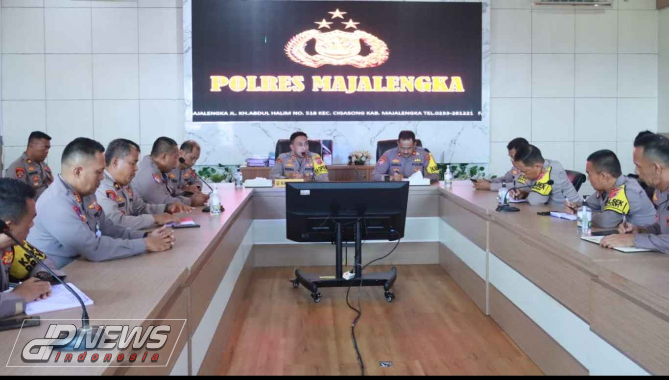 Kapolres Majalengka, AKBP Indra Novianto, S.I.K., M.Si., CPHR, dalam arahannya kepada Pejabat Utama dan Kapolsek Jajaran Polres Majalengka, menekankan pentingnya menjaga kesehatan dalam persiapan menghadapi pengamanan arus mudik. Dia juga menekankan agar menjalin kekompakan dan tetap semangat dalam melaksanakan tugas.