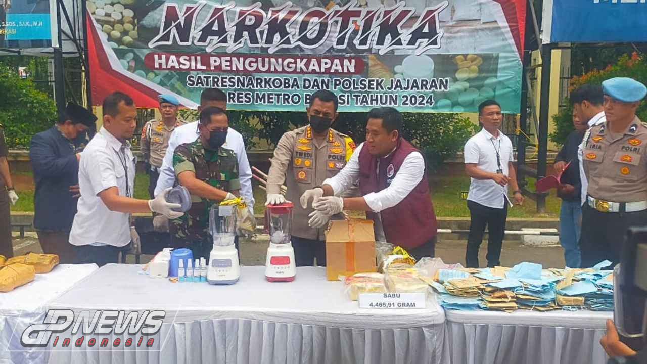 Dalam kegiatan ini, Satuan Reserse Narkoba Polres Metro Bekasi berhasil mengungkap sejumlah barang bukti narkotika, di antaranya 4.465,91 gram sabu-sabu dan 6.417,27 gram ganja.