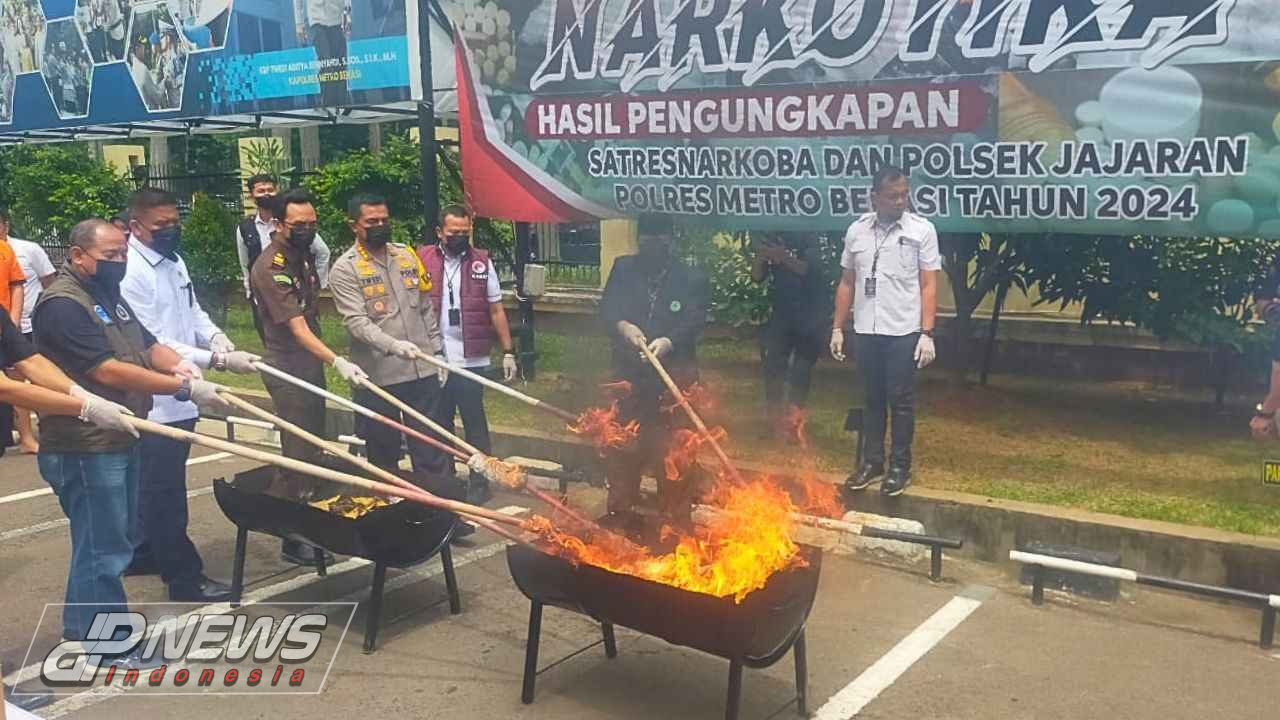 Dpnews Indonesia || Bekasi – Menyambut penghujung tahun 2024, Satuan Reserse Narkoba Polres Metro Bekasi bersama Polsek jajaran menggelar press release terkait pemusnahan barang bukti narkotika.
