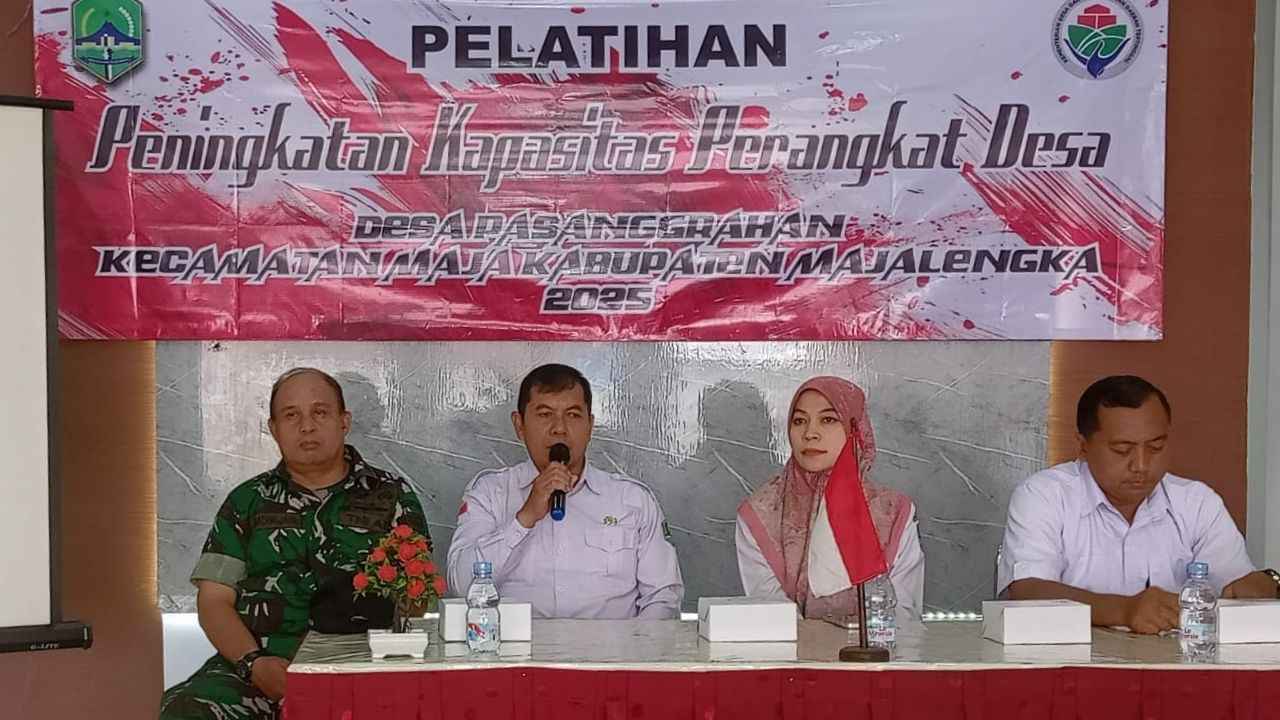 Dpnews Indonesia || Majalengka – Pelatihan Peningkatan Kapasitas Perangkat Desa merupakan program pemerintah untuk meningkatkan kemampuan aparatur desa dalam manajemen administrasi, perencanaan pembangunan, pengelolaan keuangan, pelayanan publik, dan pemberdayaan masyarakat. Pelatihan yang di selenggarakan 10 Desember 2025 di Desa Pasang grahan dihadiri oleh Camat Kecamatan Maja Doni Fardiansyah S,STP, dari DPMD Hj. Nita Dwi Wahyuni S,STP. MSi, Kapolsek, Danramil yang diwakili.
