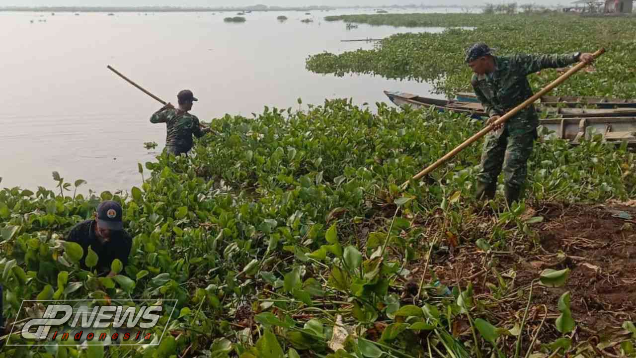 Dpnews Indonesia || Cianjur – Anggota TNI yang tergabung dalam satuan tugas (Satgas) Citarum Harum Sektor 12 Subsektor 4 Mande terus gencar bersihkan hamparan eceng gondok di genangan waduk cirata tepatnya di Dermaga Coklat, Kampung Pangkalan, Desa Cikidangbayabang, Kecamatan Mande, Kabupaten Cianjur, Jawa Barat, Selasa, (21/5/24).