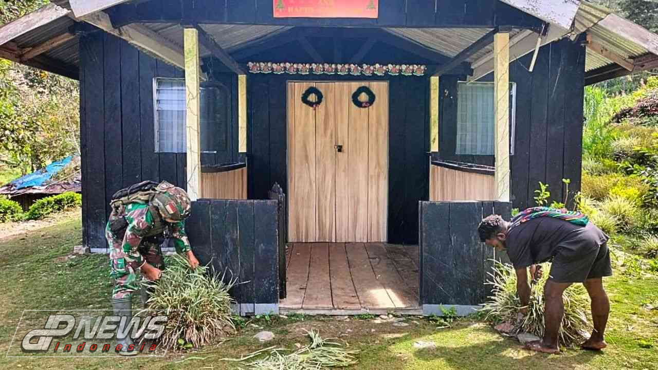 Dpnews Indonesia || Beoga Papua – Dalam rangka menyambut perayaan Natal yang penuh sukacita, Satgas Yonif 323 Buaya Putih Karya Bakti menggelar aksi gotong-royong bersama masyarakat membersihkan gereja bethesda di Kampung Milawak, Distrik Beoga, Kabupaten Puncak, Kamis kemarin (13/12/2024).