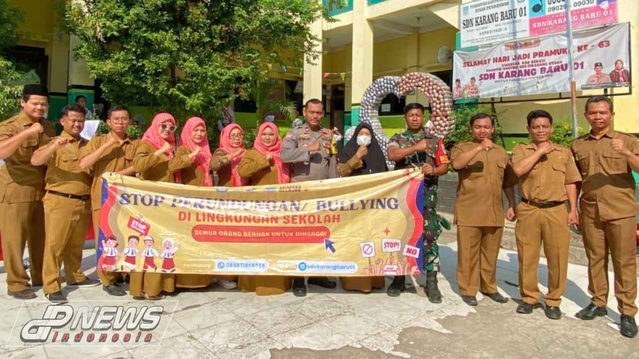 Dpnews Indonesia || Bekasi – Dalam rangka meningkatkan kesadaran akan pentingnya pencegahan perundungan di lingkungan sekolah, pihak sekolah SDN Karang Baru 01 bersama dengan Aipda Efendi Bimbingan Massal Polri (Bimaspol) dan Serda Suhardi Bintara Pembina Desa (Babinsa) dari Aparat Penegak Hukum (APH) wilayah hukum sektor Cikarang Utara, Kabupaten Bekasi, Provinsi Jawa Barat menggelar sosialisasi di SDN Karang Baru 01. Kegiatan ini bertujuan untuk memberikan pemahaman kepada siswa tentang dampak negatif perundungan serta cara-cara pencegahannya.