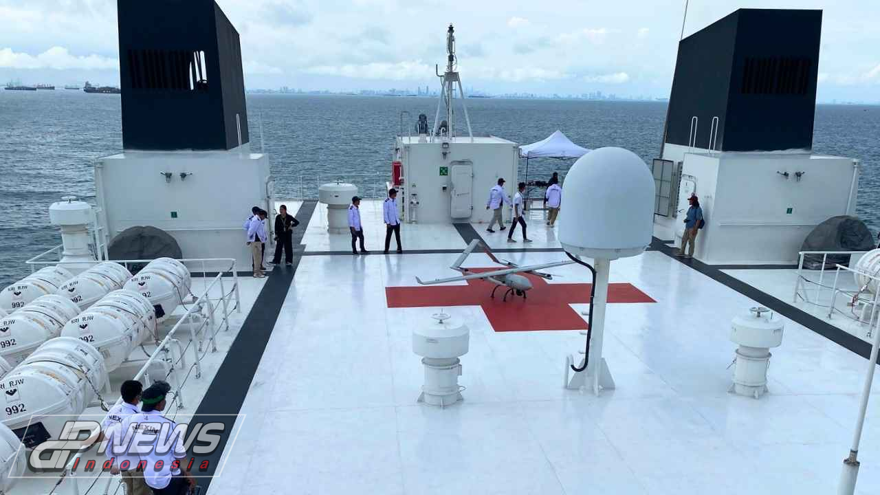 Dpnews Indonesia || Jakarta – Drone Aruna 45 sukses terbang di atas perairan Teluk Jakarta pada Kamis 16 Januari 2025 meski dalam kondisi cuaca yang tidak bersahabat. Pesawat terbang tanpa awak (Drone) berbahan daur ulang sampah plastik karya anak bangsa ini diterbangkan dari atas Kapal Perang Republik Indonesia (KRI) milik TNI Angkatan Laut (TNI AL) KRI dr. Radjiman Wedyodiningrat (992). 16/01/2025.