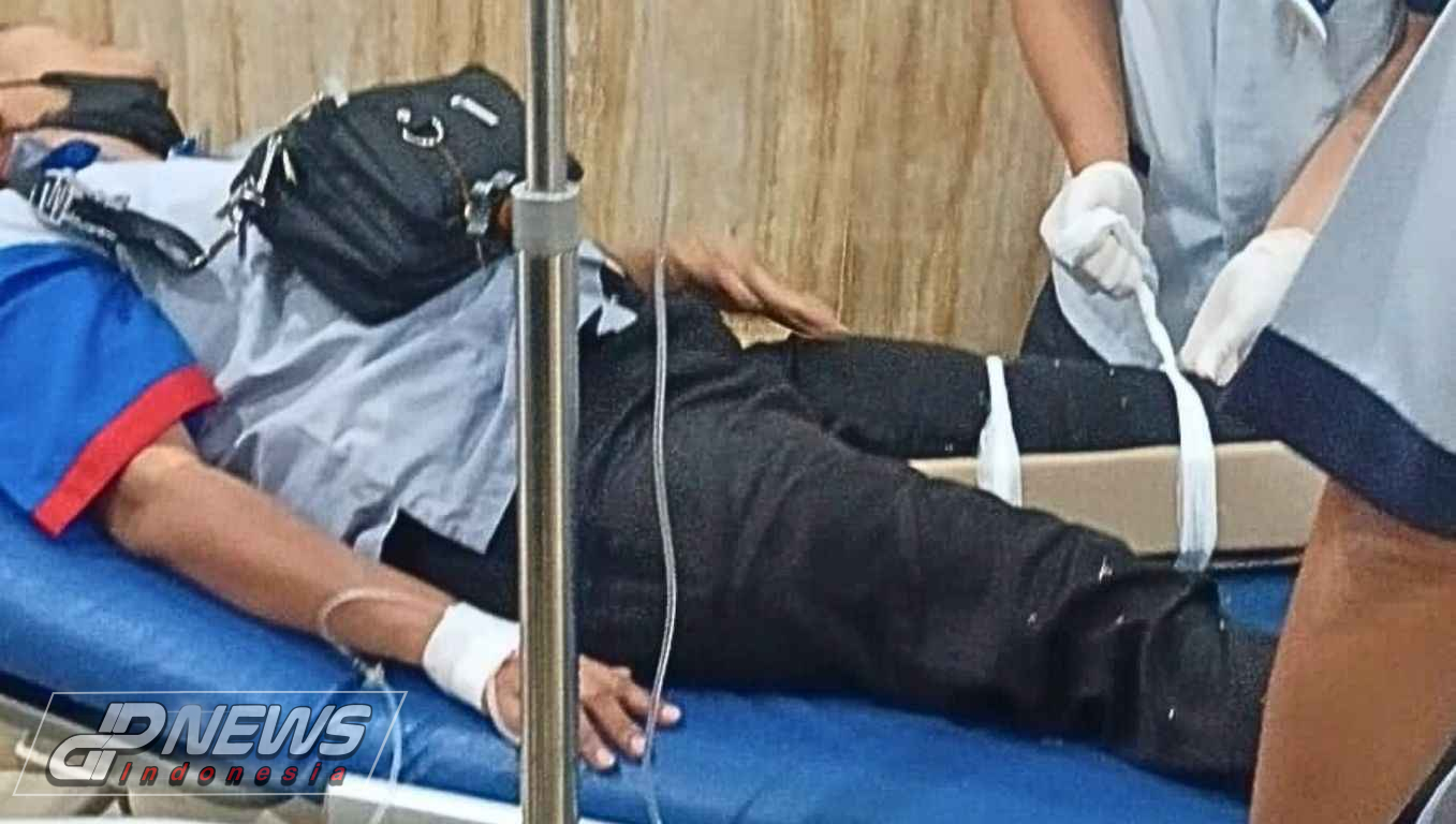 Korban yang mengendarai sepeda motor yang mengalami cidera di kaki setelah berkomunikasi langsung dibawa ke rumah sakit Karawang oleh Tim Laskar Juang Indonesia untuk tindakan pengobatan.