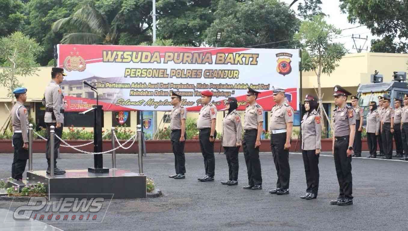 Dpnews Indonesia || Cianjur – Polres Cianjur menggelar upacara wisuda Purna Bakti 13 personel Polres Cianjur yang bertempat di Lapangan Apel Mapolres Cianjur, Selasa (2/1/2024).