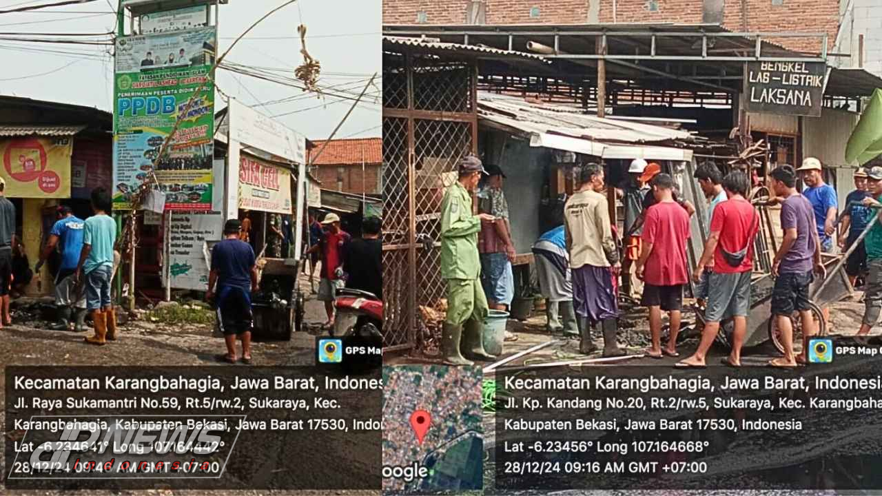 Dpnews Indonesia || Bekasi – Warga Desa Sukaraya, Kecamatan Karang bahagia, Kabupaten Bekasi, Provinsi Jawa Barat bersama Babinsa Desa Sukaraya, Peltu Noval dari Koramil 07 Cikarang, menggelar kegiatan kerja bakti sosial pada Sabtu (28/12/2024).